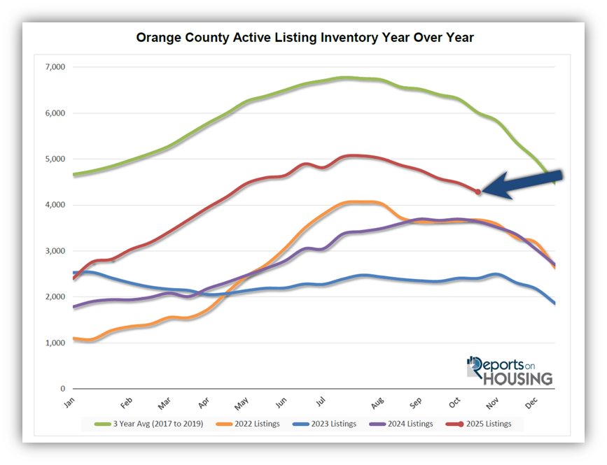 Many more sellers have been languishing on the market without success. Today’s Expected Market Time (the number of days it takes to sell all Orange County listings at the current buying pace) is at 83 days, its slowest late October pace since 2022. It was at 69 days last year, and 56 days in 2023. After sitting on the market for a long time, today’s sellers are much more willing to negotiate price and terms. It does not mean that a seller would be willing to entertain a “low-ball” offer, but they are more inclined to negotiate the price, pay some of the buyer’s closing costs, and even buy down the buyer’s interest rate by paying mortgage points.